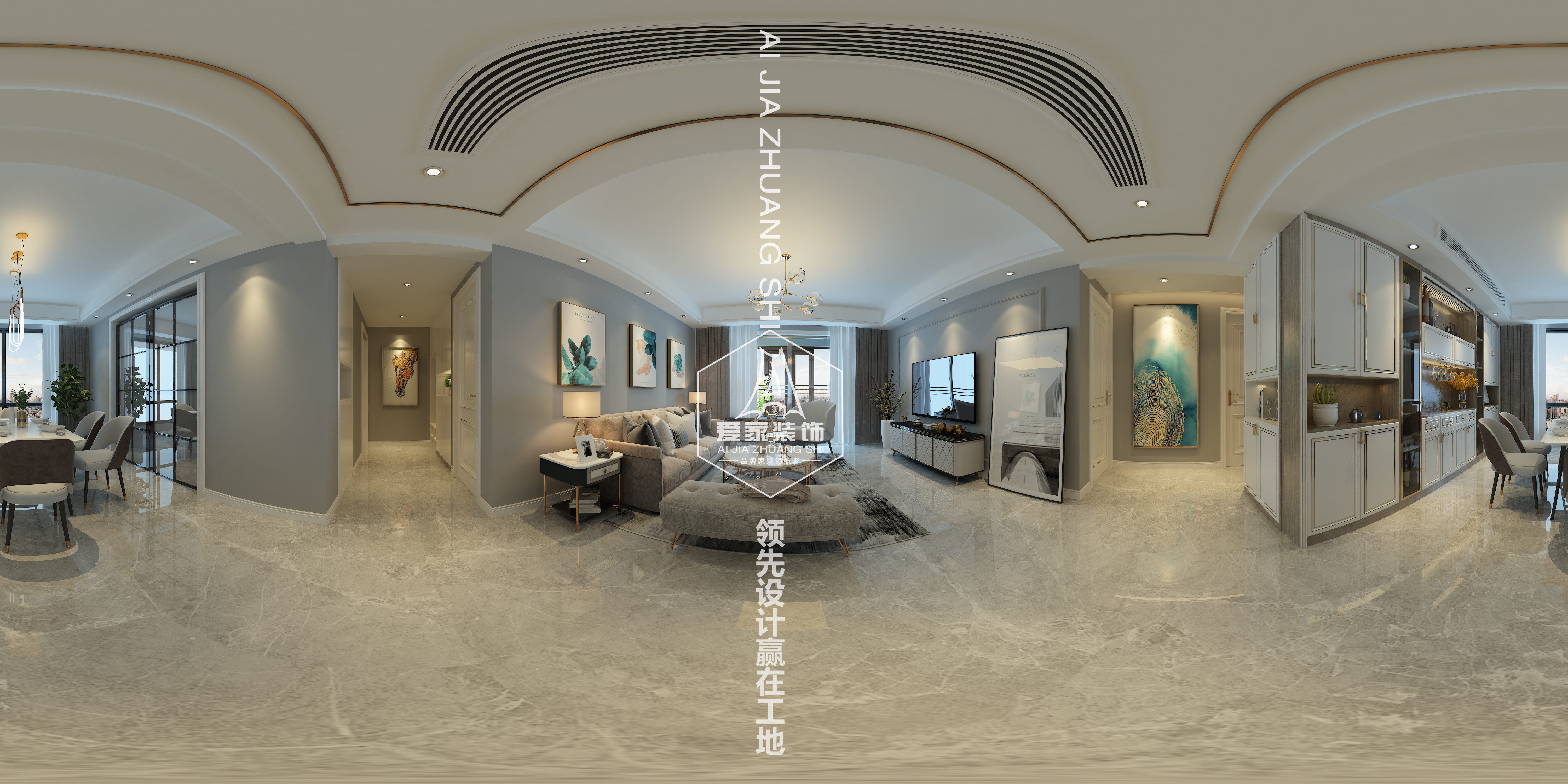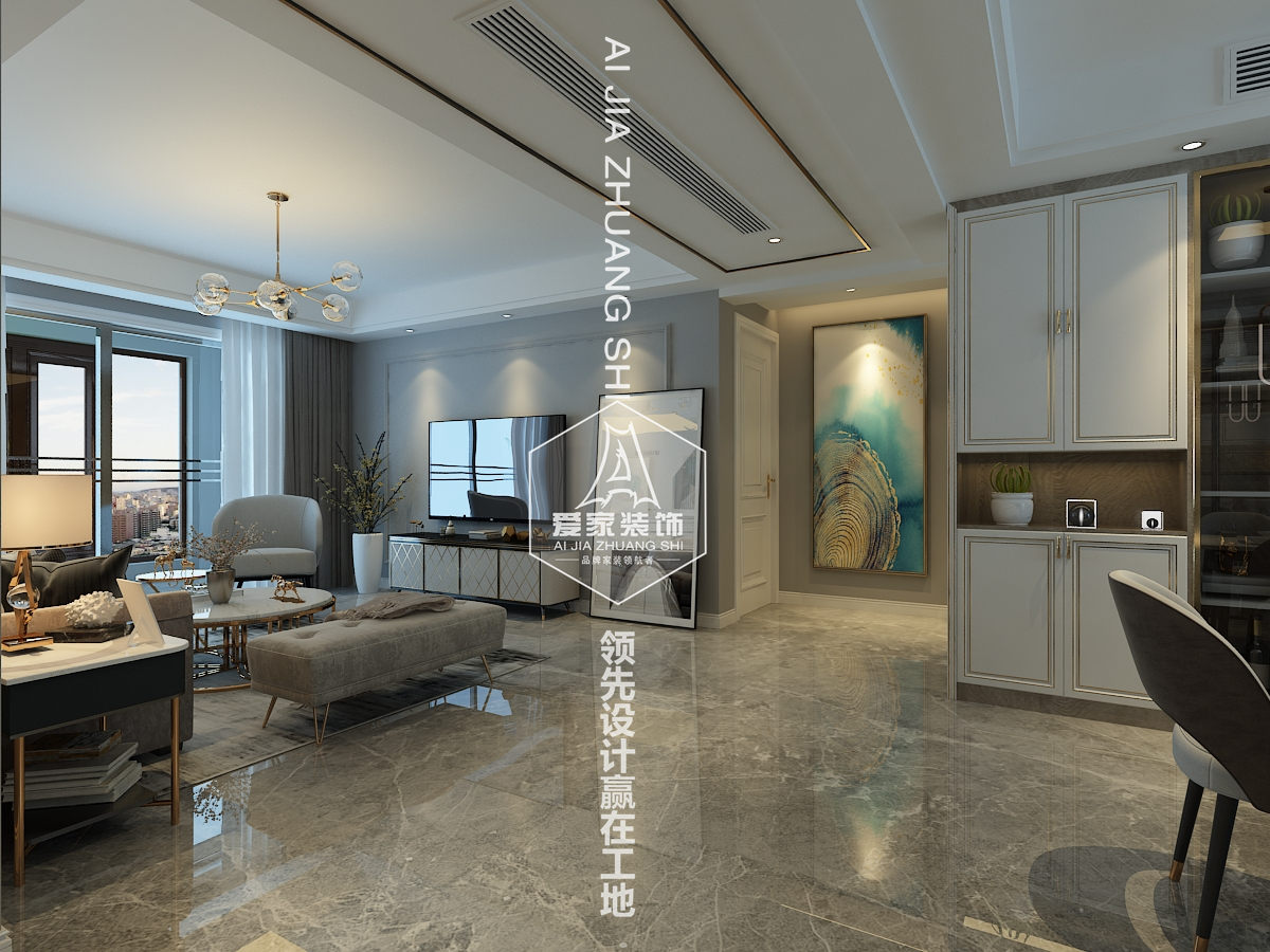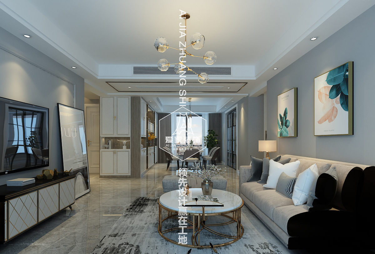 設(shè)計(jì)說明:本案采用了白、藍(lán)、金等色調(diào),在整個(gè)空間里呈現(xiàn)的是淡藍(lán)色和白色顏色組合非常流行。加了一點(diǎn)金屬材質(zhì),使整個(gè)空調(diào)更家生動(dòng),有活力。