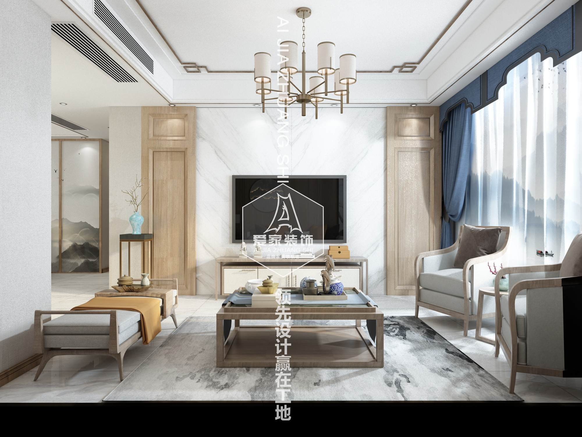 新中式風(fēng)格,也被稱(chēng)作現(xiàn)代中式風(fēng)格。新中式風(fēng)格設(shè)計(jì),既是中國(guó)傳統(tǒng)風(fēng)格文化與現(xiàn)代時(shí)尚元素的融合與碰撞,又是在中國(guó)當(dāng)代文化理解基礎(chǔ)上的現(xiàn)代設(shè)計(jì)。一談到“新中式設(shè)計(jì)”、“現(xiàn)代中式風(fēng)格設(shè)計(jì)”,大家的腦海中一下子就聯(lián)想到中國(guó)風(fēng)的傳統(tǒng)家具、古典的裝飾以及魚(yú)、鳥(niǎo)、花、蟲(chóng)的裝飾。但其實(shí)不然,新中式設(shè)計(jì)更是在原來(lái)傳統(tǒng)中式的風(fēng)格上添加了一些時(shí)尚的現(xiàn)代元素,是現(xiàn)代風(fēng)格與中式風(fēng)格的完美融合。本案中使用了淺胡桃作為主色調(diào)在配些許中式水墨色彩搭配,整體突出現(xiàn)代,年輕、自然、素雅等特點(diǎn)。